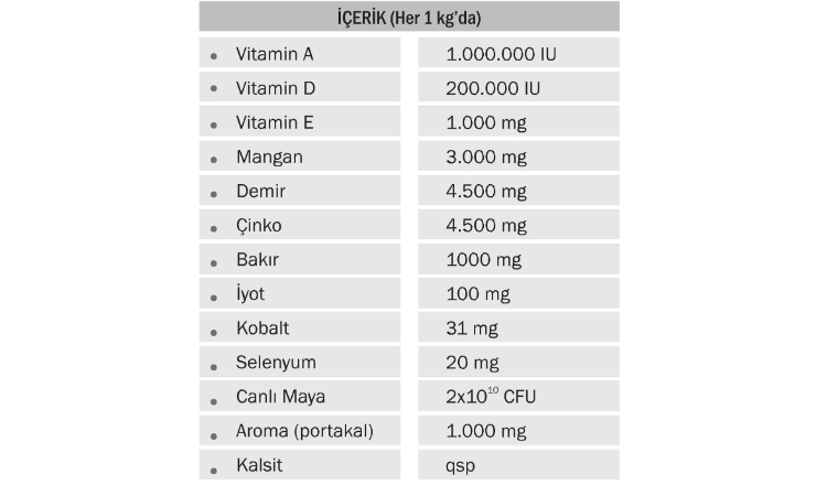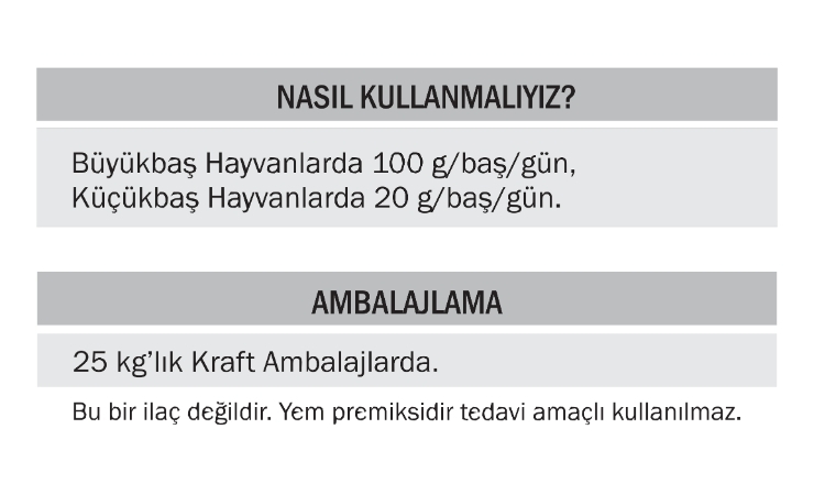• ✓ Sağlık parametrelerini iyileştirerek süt ve besi performansını destekler.