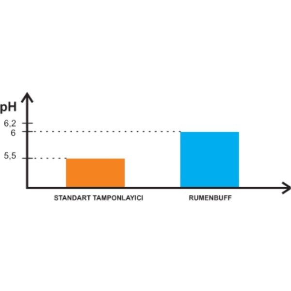 • ✓ Rumen pH’sını tamponlayarak rumen sıvısının optimal düzeyde kalmasını sağlar. (Rumen pH değeri 5,8–6,2)